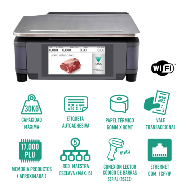 Sin duda, la DIGI SM-120T es la balanza tipificadora más completa y elegante del mercado. Su diseño ergonómico y su construcción robusta, su pantalla multimedia, más su impresor térmico de alta resolución y las funciones adaptables según el negocio, hacen de la balanza tipificadora DIGI SM-120T la alternativa ideal para los procesos de pesaje y etiquetado.